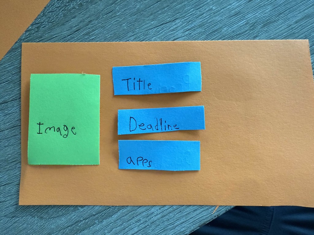 This week was spent working on a paper prototype visualization of core application functions.
